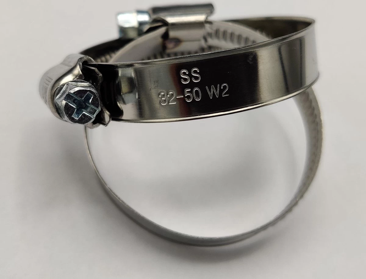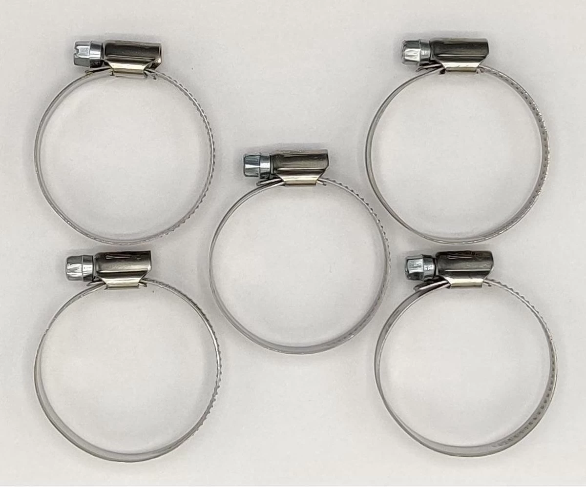 Set van 5 st RVS slangklemmen met een spanwijdte van 32-50mm . Band is 12 mm breed
