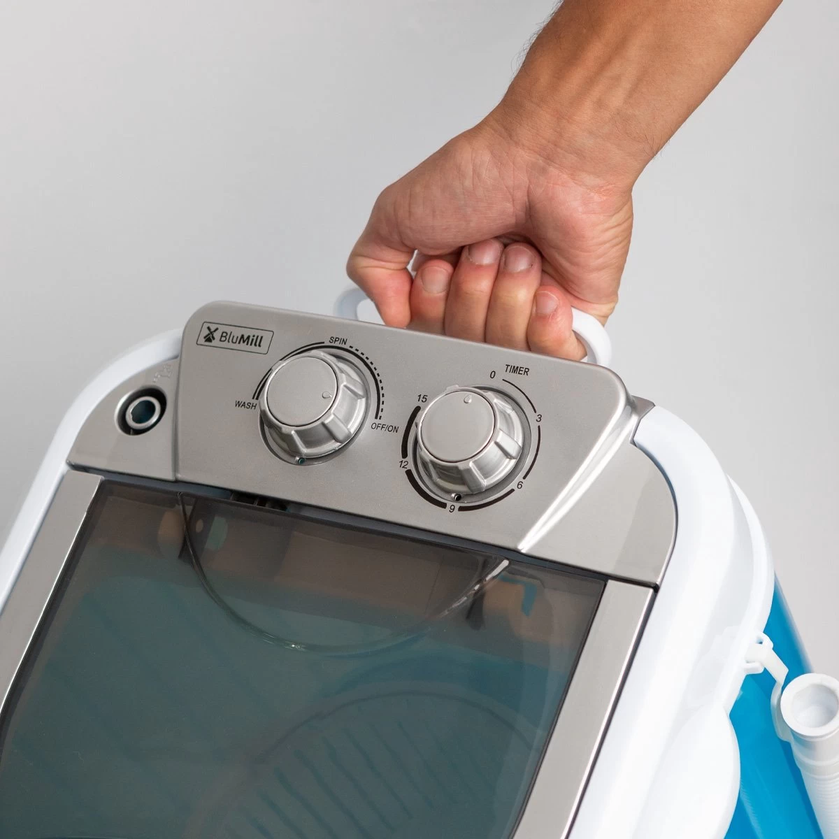 Met deze BluMill Mini Wasmachine kunt u overal wassen en centrifugeren! Deze BluMill Mini Wasmachine de oplossing voor snel tussendoor wassen, onderweg of al u thuis weinig ruimte heeft. Hij is ideaal voor studenten, voor gebruik op de camping of voor gebruik op plaatsen waar er weinig ruimte is, zoals kleine keukens, caravans of campers.