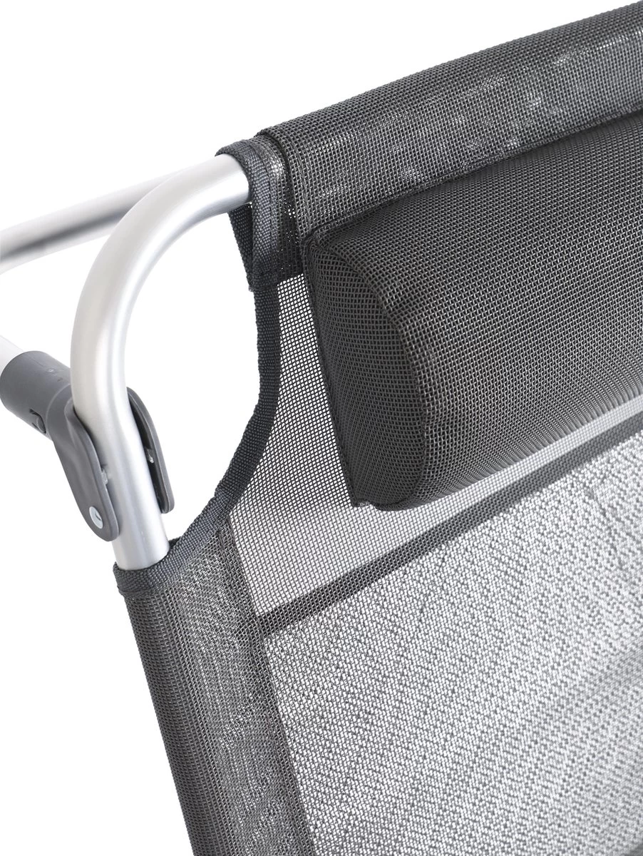 Het frame is gemaakt van lichtgewicht aluminium en de bekleding van textileen. Daarnaast is deze strandstoel voorzien van comfortabele armleuningen, stabilisatoren, een vakje om tijdschriften in op te bergen. Tot slot is de strandstoel voorzien van een hoofdkussen dat naar achteren weg te klappen is. Zo kan je zelf bepalen of je gebruik wil maken van het kussen.