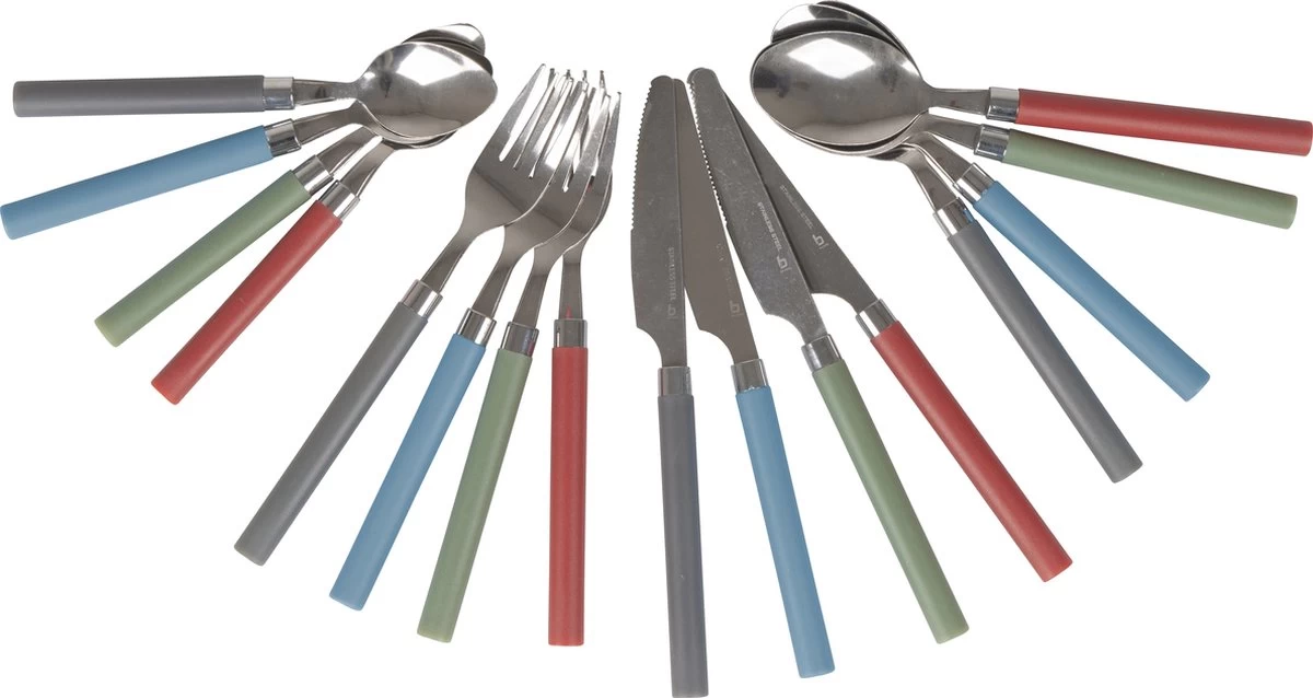 - Bestaat uit een mes. vork. lepel en theelepel.