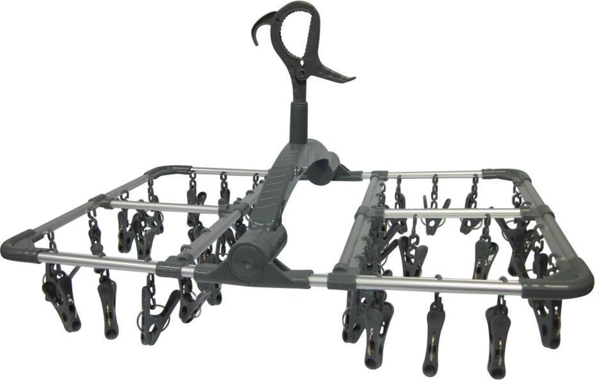 Extra stevige en opvouwbare droogcarrousel. Dit droogrek is gemaakt van aluminium en voorzien van een sterke haak voor bevestiging. Ideaal voor het drogen van de kleine was. Beschikt over 36 knijpers.