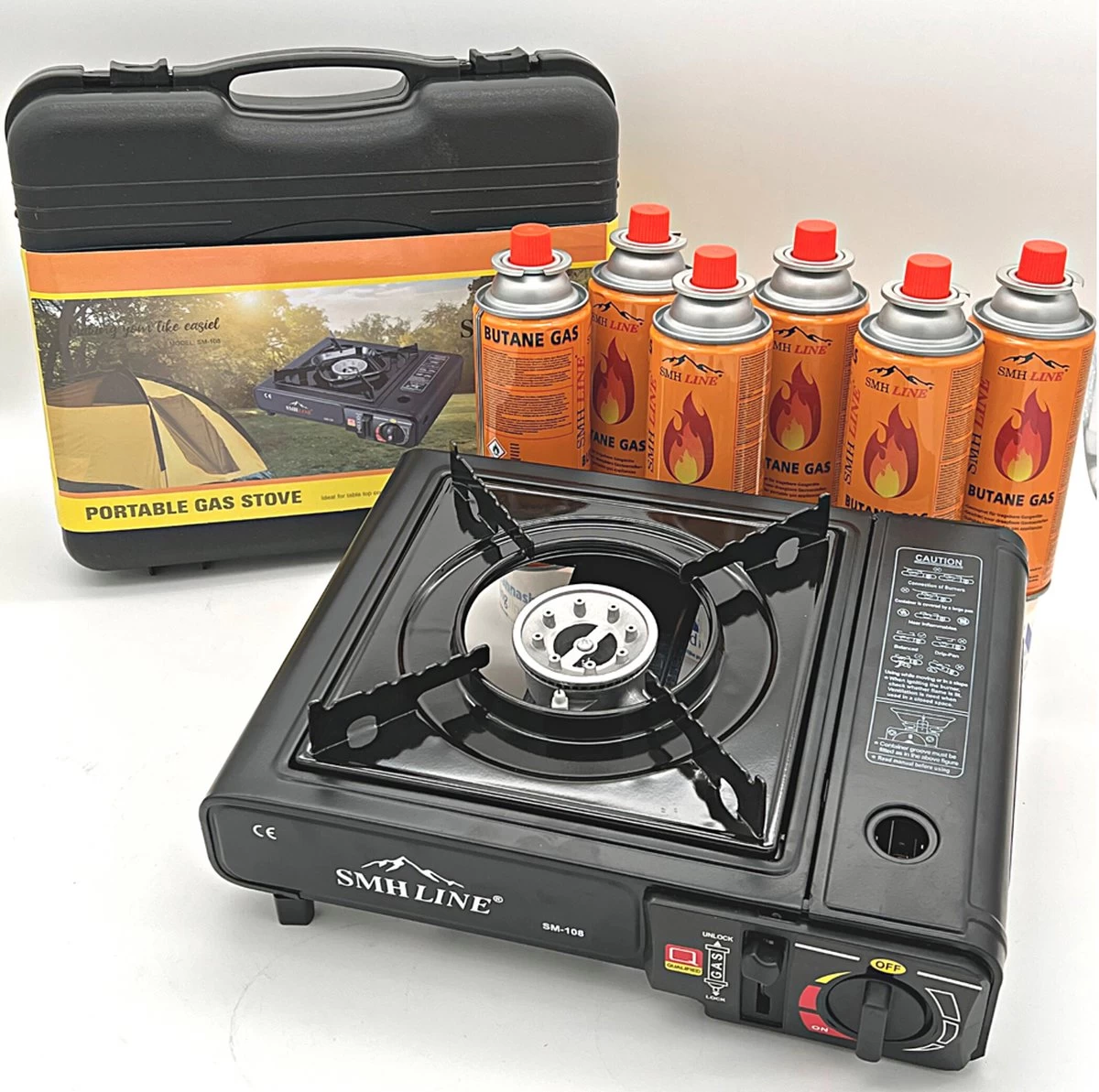 Deze SMH LINE® Draagbare Campingkooktoestel is direct gebruiksklaar en gemakkelijk in gebruik en vooral onderhoudarm en geurvrij in tegenstelling tot benzine en kerosinekachels. De Draagbare campingkooktoestel is deaal voor camperen, picknicken en buitenhuis gebruik. Het Camping kooktoestel brandt zonder residuur achter te laten. De Vlam kan worden geregeld door aan de knop te draaien. Ook is deze Camping kooktoestel voorzien van aluminium branderkop en een elektrisch piëzo-ontsteking.