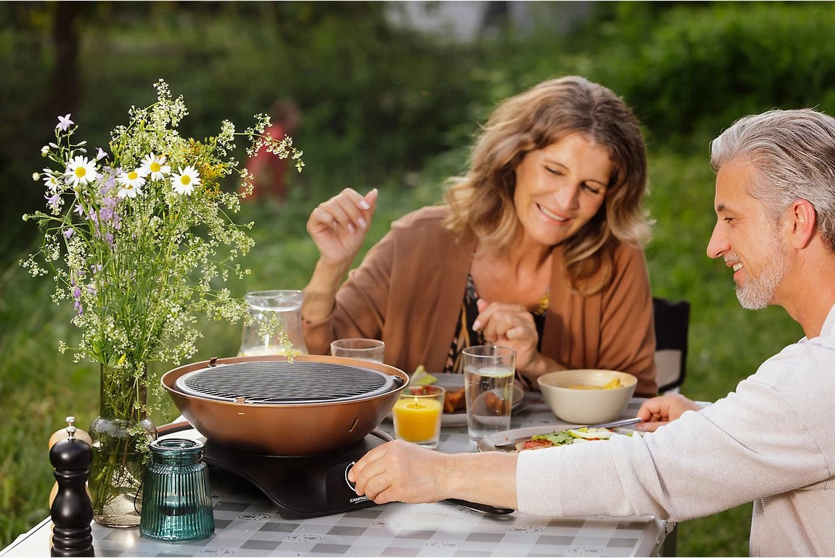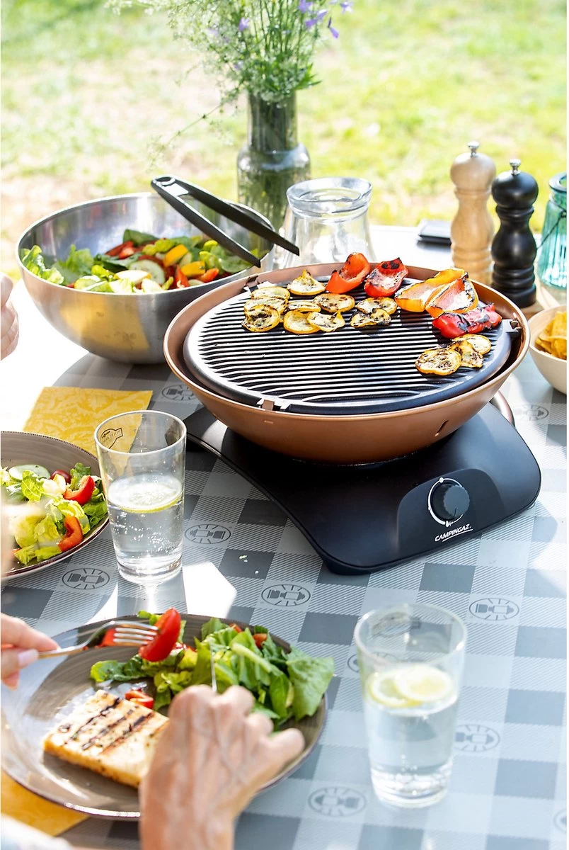 De Campingaz 360 Grill CV is een camping kooktoestel met een plat ontwerp waarop kan worden gegrild terwijl je comfortabel aan tafel zit. De 360 grill wordt volledig gemonteerd geleverd en is uitermate geschikt voor zowel het balkon als op de camping. Licht, compact en handig om overal mee naar toe te nemen.