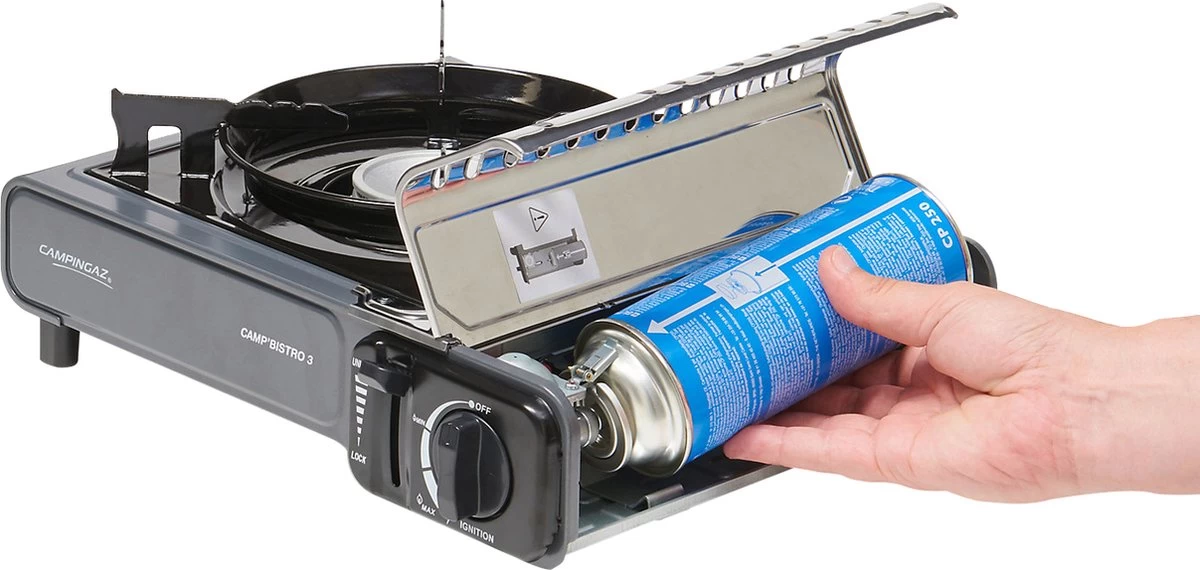 De Campingaz Camp Bistro 3 is een compact camping kooktoestel die je gemakkelijk mee kunt nemen naar de camping en waar je verschillende maaltijden op kan bereiden.