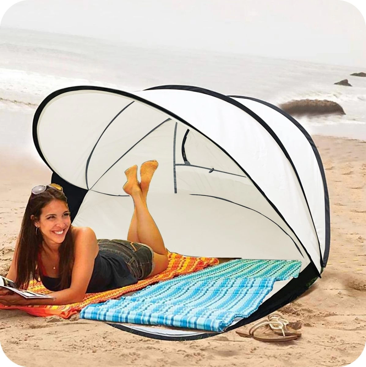 Deryan Luxe Pop Up Strandtent XXL – Anti-UV 50+ – Cream