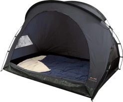 Deze 2 pers. binnentent is als slapcabine overal inzetbaar. In de voortent als extra slaapplaats of in elke andere tent of bustent. Is vrijstaand en past overal. Bodem gemaakt van stevig PE sheet en de wanden en dak zin van een ademend nylon. De grote deur met mesh zorgt voor een eenvoudige instap. Klein op te vouwen. Incl. opberghoesje.