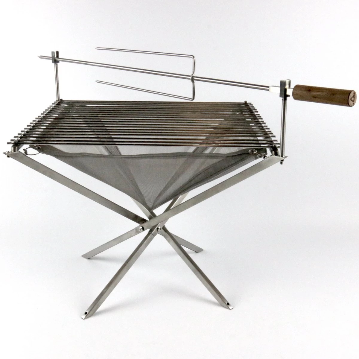Door zijn lichtgewicht en draagbaarheid is deze vuurkorf met grill en spit ook ideaal om mee te nemen bij het kamperen. Het doel van de vuurkorf is niet alleen om een gezellige sfeer te creëren, maar ook om hem te gebruiken als kookvuur. Daarvoor hebben we een aantal kookaccessoires gemaakt die heel gemakkelijk te gebruiken zijn in combinatie met de opvouwbare vuurkorf.