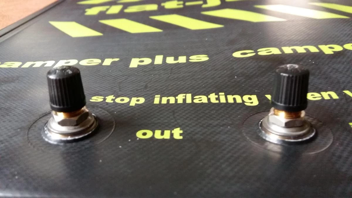 -Inflater le flat-jack par la valve “IN” avec votre pompe à pied/pompe à vélo/mini-compresseur.