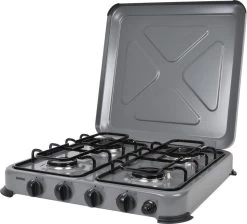 Met dit ruime vierpits kooktoestel van Gimeg maak je op vakantie de lekkerste maaltijden klaar. Dit gaskooktoestel is zeer veilig te gebruiken en maakt koken op de camping net zo makkelijk als thuis.