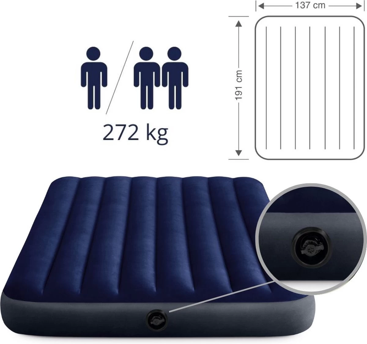 Airbed uit de classic serie. Afmetingen: 137 x 191 cm. Met waterproof flocklaag. Geschikt voor indoor en outdoor gebruik.