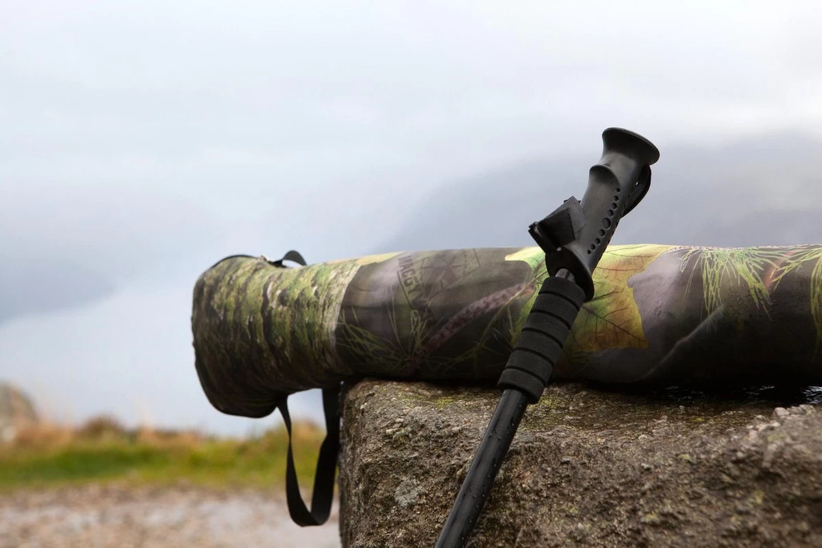 Inclusief telescopische tentstok (tevens wandelstok), touw, scheerlijnen, haringen en transporthoes