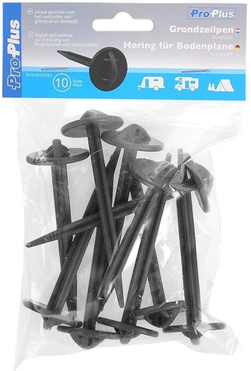 ProPlus 361736 Tentharing Heringset Kunststoff – 10 Stück für Bodenplanen und Zeltteppiche 7.5 cm x 9 cm 10 stuk(s)