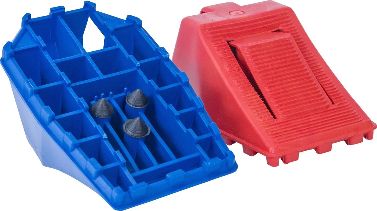 Wielblokken beschermen het voertuig tegen ongecontroleerde bewegingen op hellingen, maar ook in de garage of de garagewerkplaats. Een must voor elke chauffeur en een praktische uitrusting voor garages. Zij worden gekenmerkt door een specifieke structuur die zorgt voor stabiliteit van het voertuig ongeacht de toestand van het oppervlak, en voor duurzaamheid en weerstand tegen beschadiging, hetgeen wordt gegarandeerd door de nauwkeurige selectie van de kunststoffen die bij de produktie ervan worden gebruikt – polypropeen en polyamide.