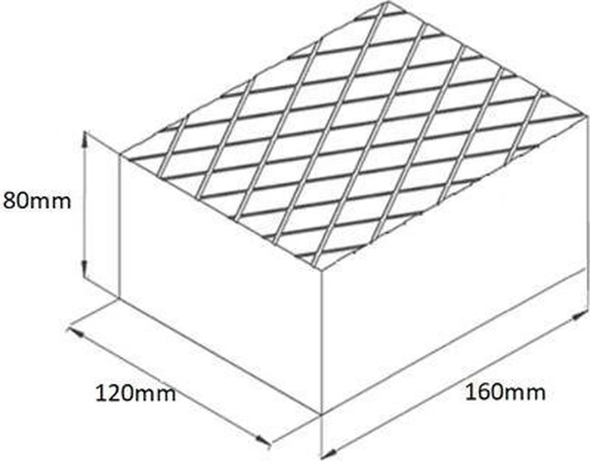 160 mm lang x 120 mm breed x 80 mm hoog.