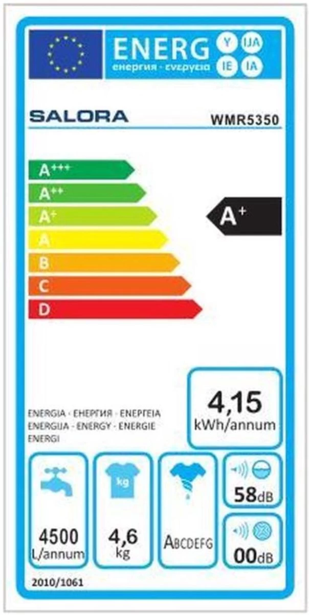 Deze compacte Salora WMR5350 mini wasmachine heeft een vulgewicht van 4,6 kg en een vulgewicht voor de centrifuge van 2 kg. De wasmachine beschikt over een timer van 15 minuten. Een zeer handige wasmachine voor op de camping of studentenkamer.