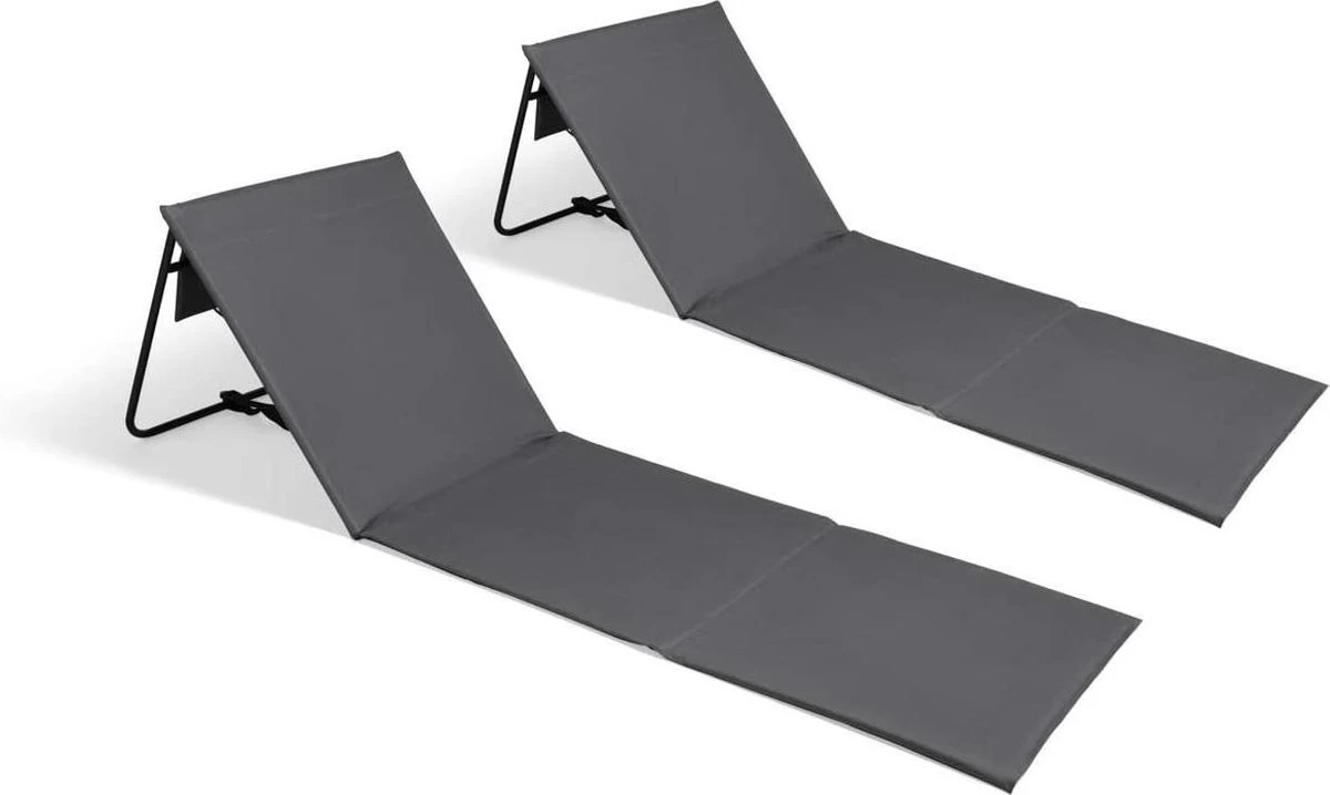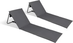 Zo heb je altijd de belangrijkste dingen bij je. Uiteraard kun je de ligstoelen ook neerzetten als campingligstoel, tuinligstoel of waar je maar wilt. Afmetingen – Afmetingen (uitgevouwen): 100 x 51 x 41 (L x B x H) – Afmetingen (opgevouwen): 64 x 9 x 63 (L x B x H) Materiaal – Frame: gepoedercoat staal – Strandmat: 100% polyester – Sneldrogend comfortschuim – Kleur: grijs Uitrusting – Opbergtas – Pas de band aan de hoogte aan – Handvat om te dragen Heeft u nog een comfortabele mat nodig voor een strandvakantie, de volgende kampeertocht of een bezoek aan het meer?