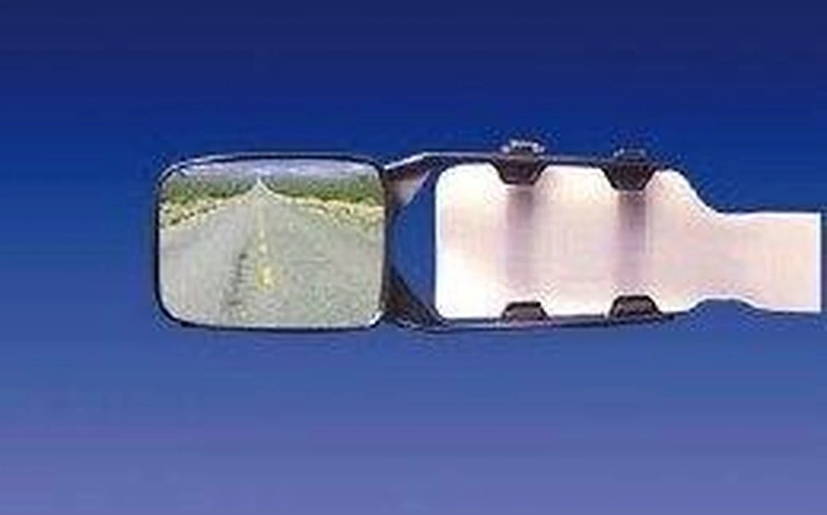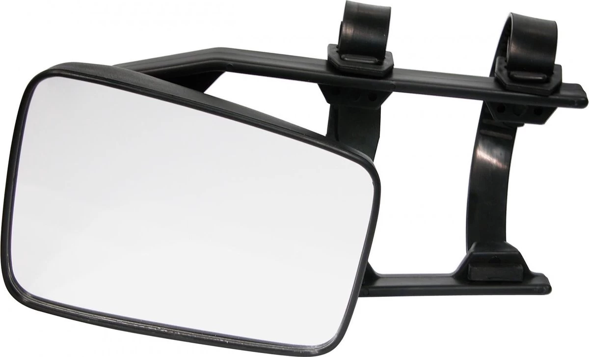 Universele opzetspiegel met flexibele armen, voor bevestiging op bestaande autospiegel. Met vlak glas.